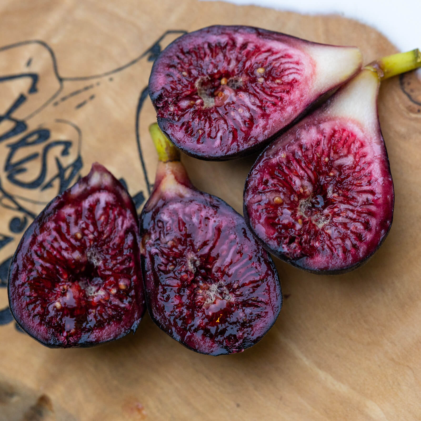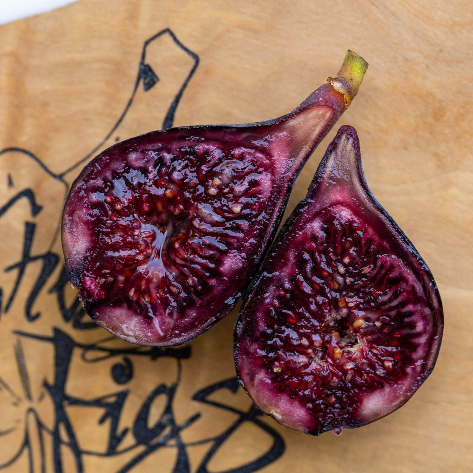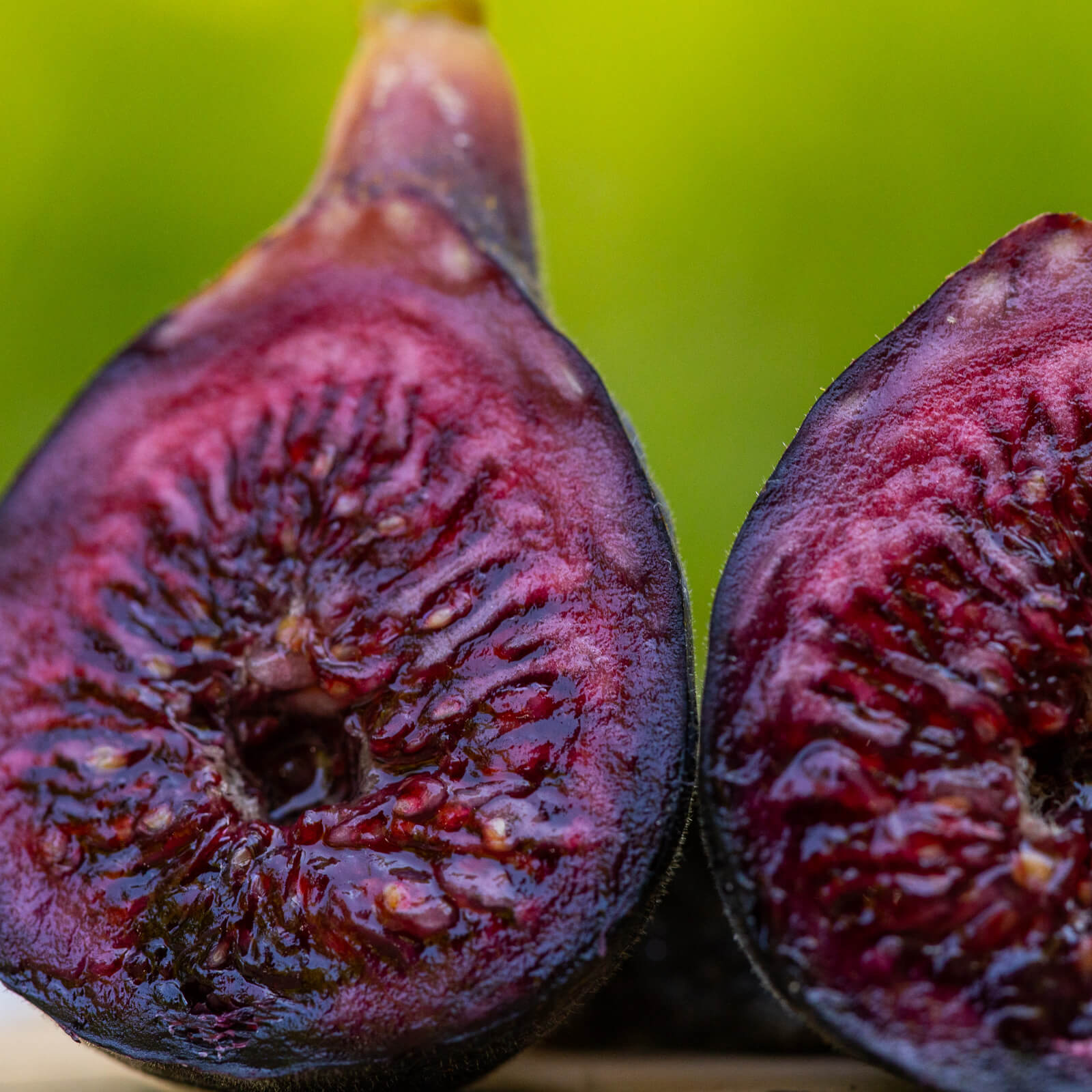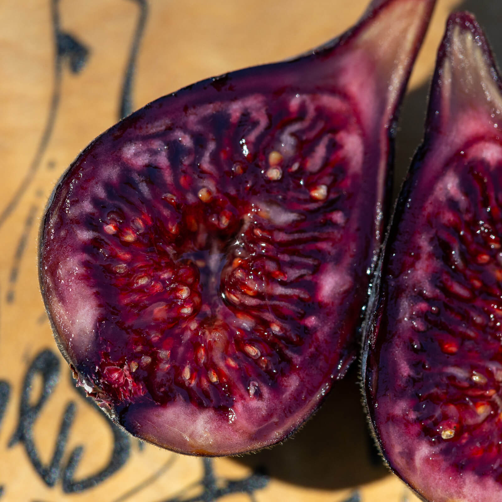 A small celeste variety that is dark black with a hint of purple on the outside, and variations of deep purple inside.