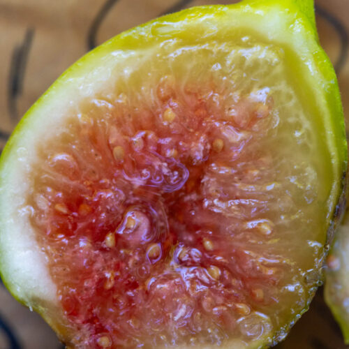 From a local grower in Earleville Maryland.  It is an italian variety that produces great tasting figs if you really let them hang until the skin is very soft. They are small to medium size, and often have that long stem lolipop shape.  They are light colored yellow/green honey figs with a juicy pinkish interior…