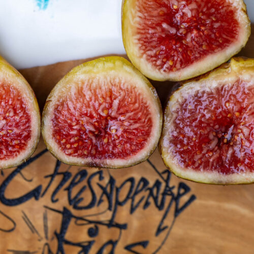 A medium sized fig that gets an olive and redish coloration. The interior ripens to a soft honey filled consistency and if pretty sweet. It came highly recommended from another Maryland grower