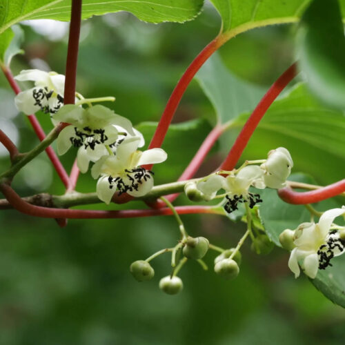 A male hardy kiwi that is necessary for fruit production on most of the female hardy kiwi varieties (except Issai).  It can be grafted, but grows more easily from cutting