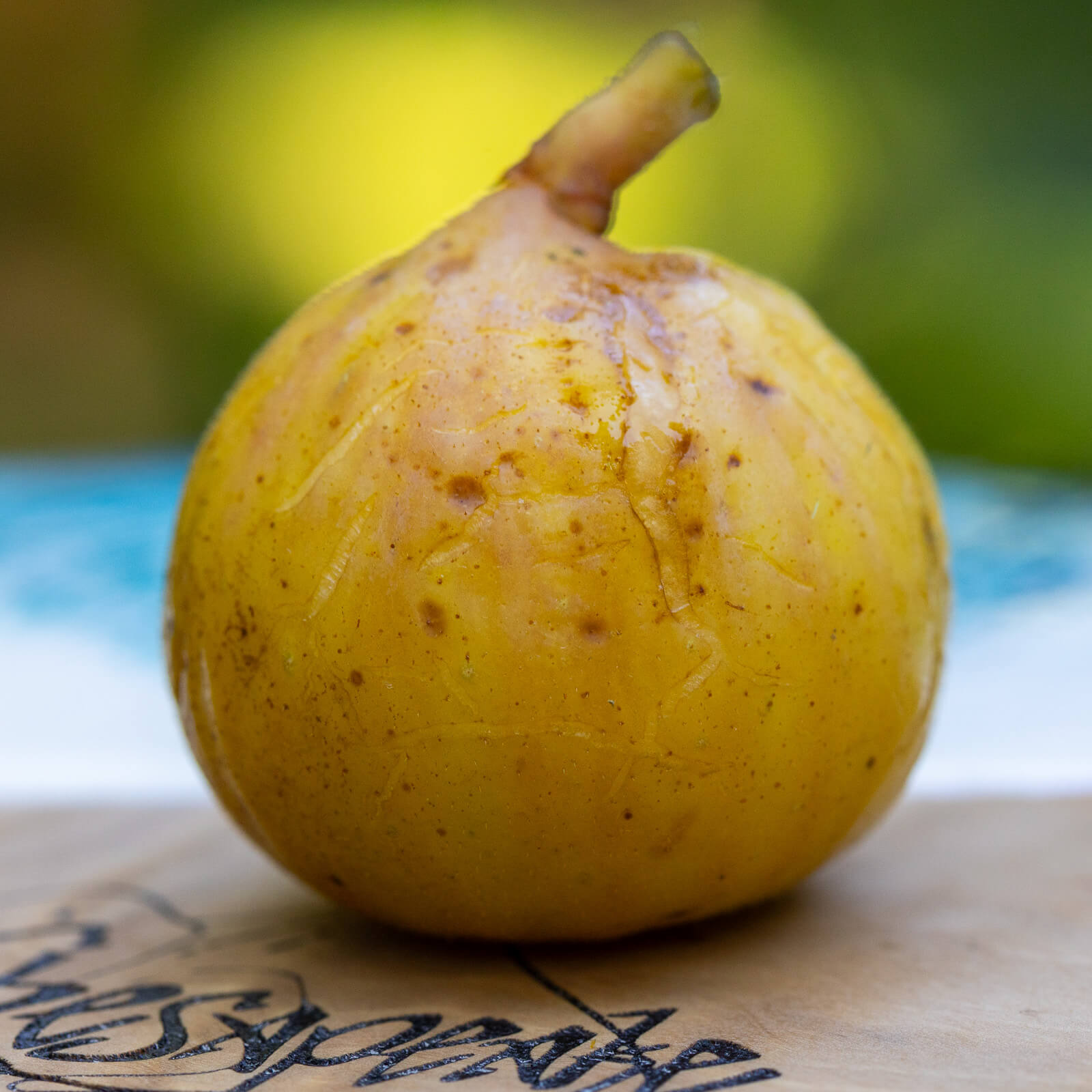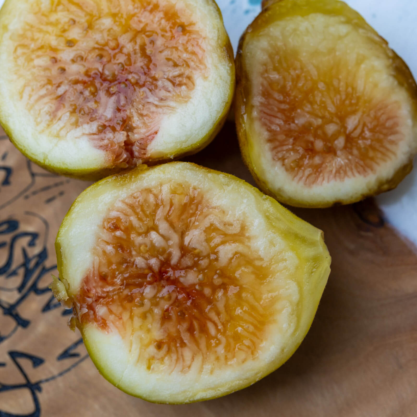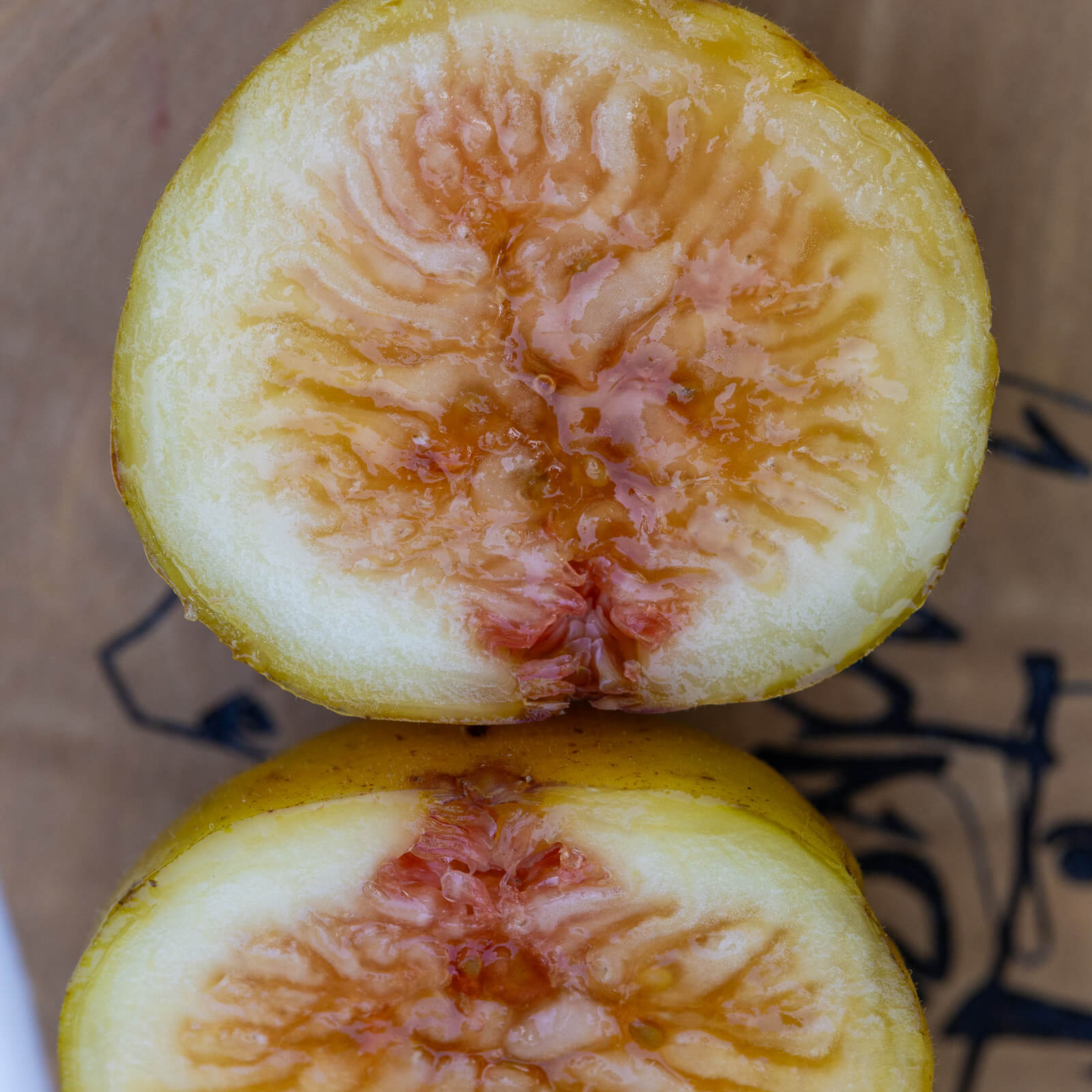 A really good, decent sized yellow honey fig. It gets a bit of redish coloration creeping into the interior as it gets very ripe.